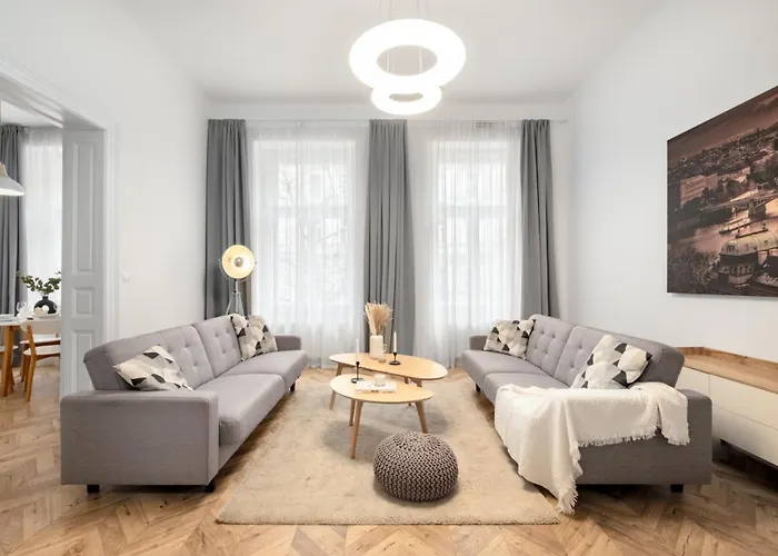 A Two Bedroom Apartment Near Park In Vinohrady By Prague Days apartman kínál egy teakonyhát, valamint szobákat kávé/teafőzővel, ülősarokkal és síkképernyős műholdas TV-vel. Az ingatlan 2 km-re van a Károly híd területétől és 2,1 km-re a Prágai Táncoló ház térségétől.